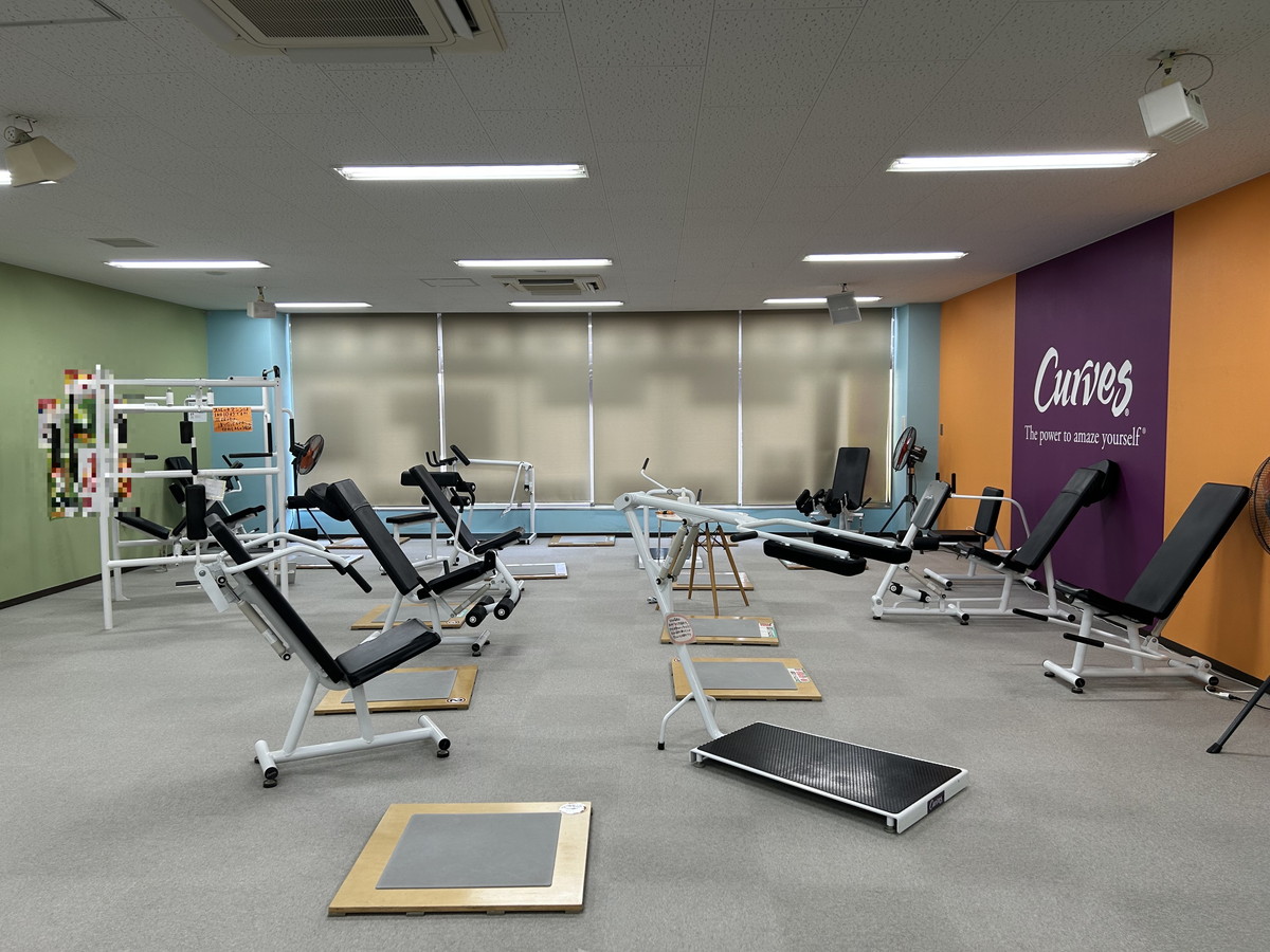 大分駅南口を出て左折し右手の宝くじ売り場横のエレベーターで2階に上がり正面の大分ガスさんの奥隣がカーブスです。