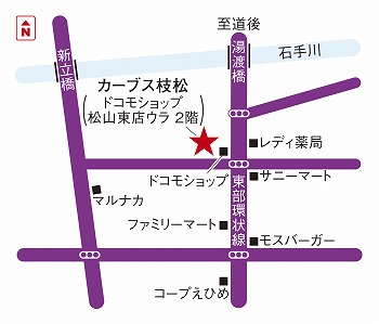 ドコモショップ松山東店さんの裏側、サニーマート束本店さんの向かい側
