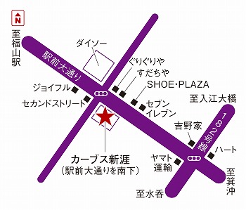 駅前大通りを南下、セカンドストリート福山西新涯店さんを右に曲がる。