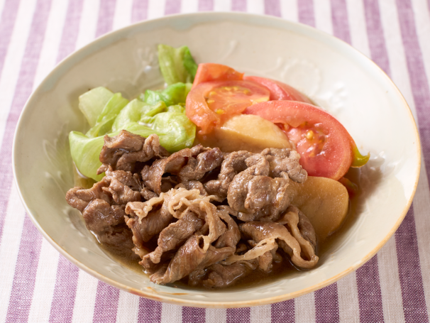 牛肉と麩・レタスのトマトすき煮レシピ【管理栄養士監修】