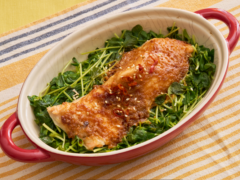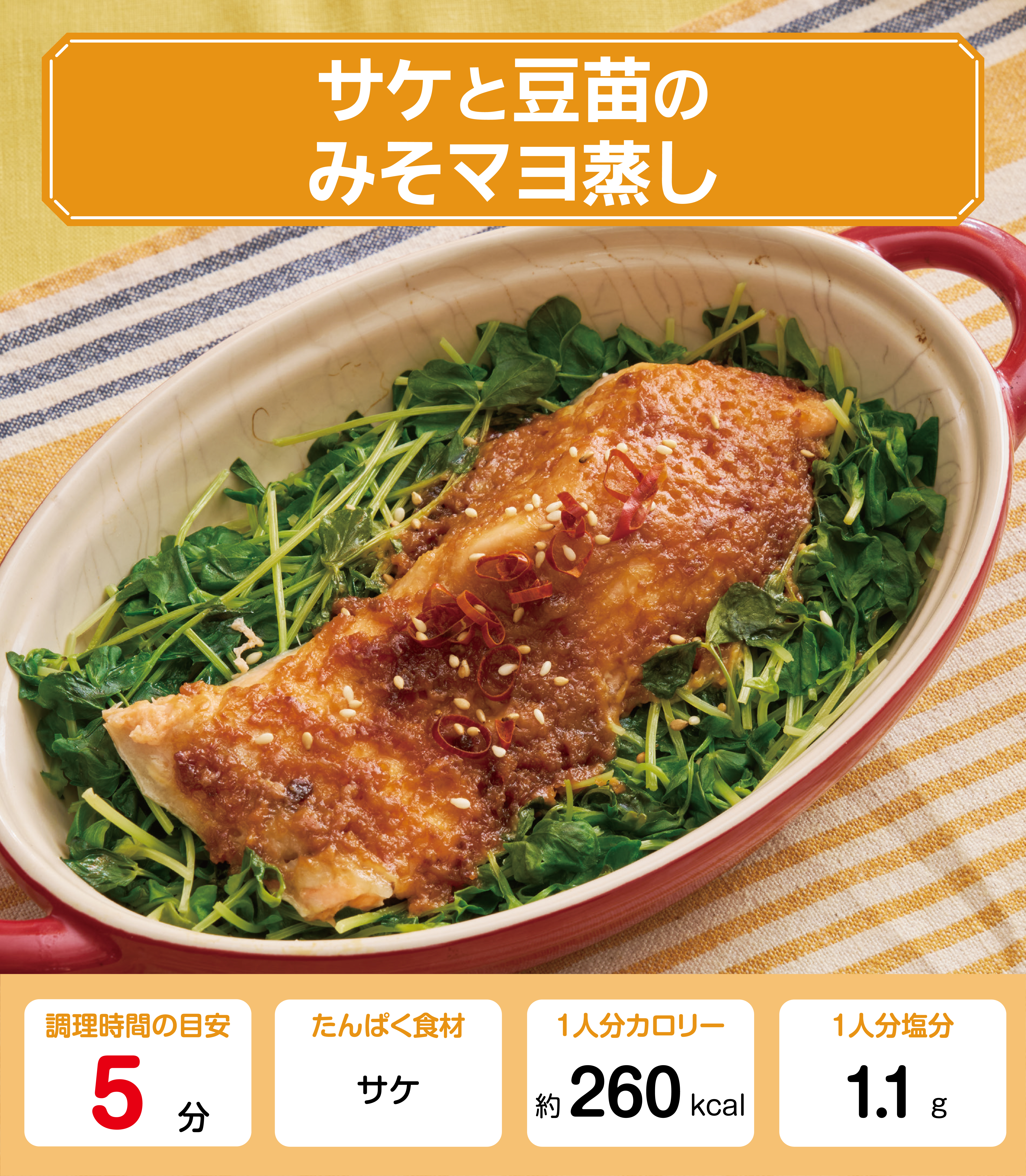 サケと豆苗のみそマヨ蒸しレシピ【管理栄養士監修】