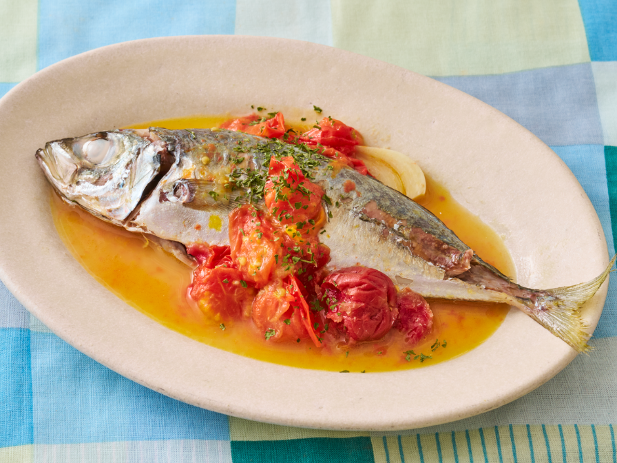 アジの梅トマト蒸しレシピ【管理栄養士監修】
