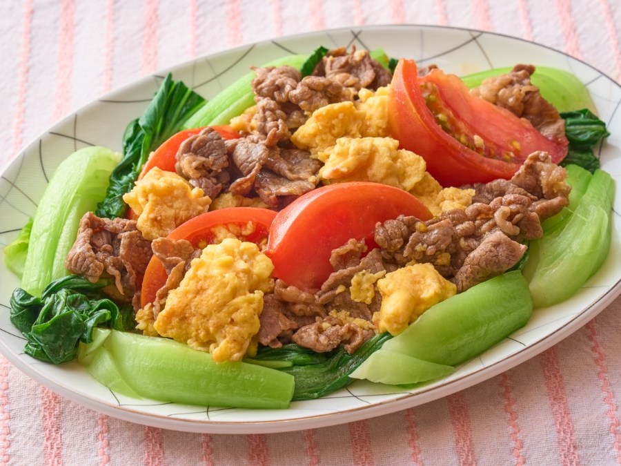 牛肉と卵とトマトのオイスターソース炒めレシピ【管理栄養士監修】