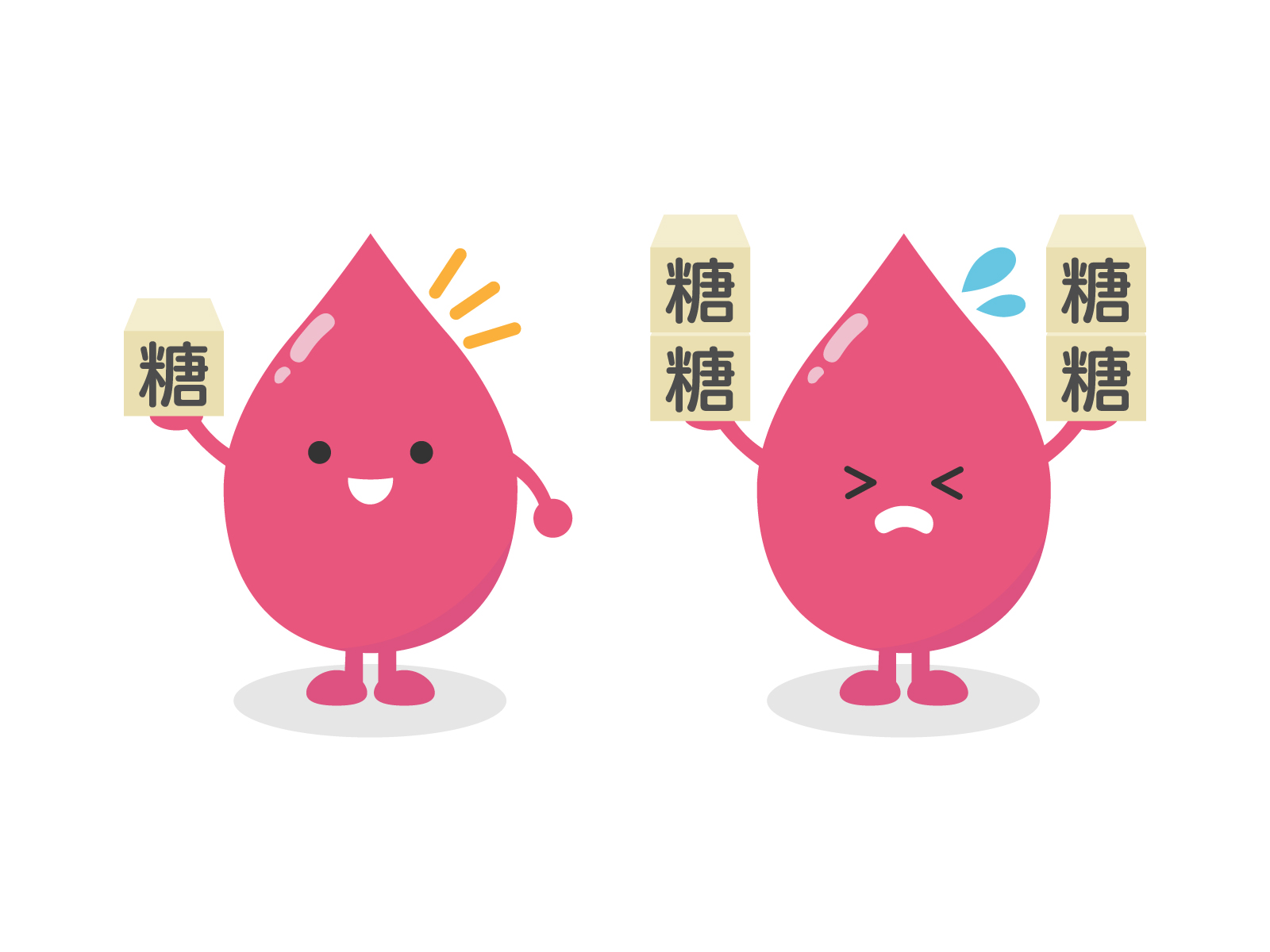 血糖値を下げるためには、食事と運動の両面で考える必要があります。食事については、糖質(炭水化物)の過剰摂取を避けること。具体的には、ご飯、パン、麺類、イモ類、甘いもの、ジュースなどは、とり過ぎないようにしましょう。筋肉を増やすために、たんぱく質をしっかりとりながら、バランスのよい食事を心がけることが大切です。