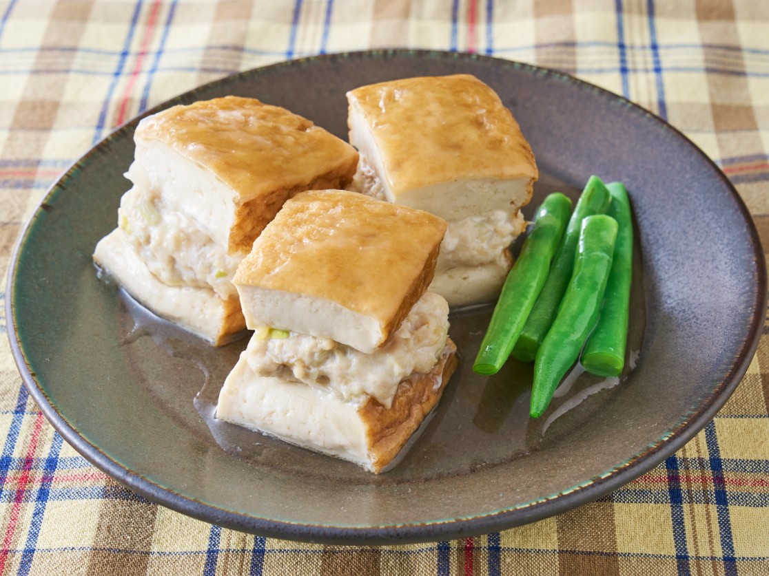 厚揚げとひき肉のはさみ蒸しレシピ【管理栄養士監修】