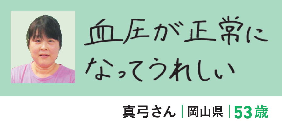 「血圧が測るたびに高くなっていき、まずいなと思って塩分を控えるようにしましたが、変化はありませんでした。そんなとき、カーブスに入会。週3回通っているうちに徐々に血圧が下がり、気づけば上が120mmHg、下が60mmHgと正常値範囲内に。」
