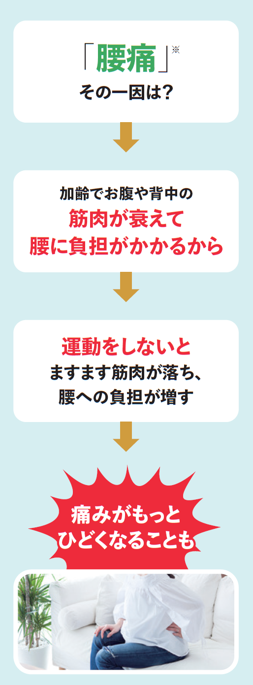 慢性期の運動は、痛みを和らげることにつながります。また筋力がつくと、将来的な痛みの発生予防にもなります。筋肉は何もしなければ歳とともに衰えていきますが、何歳になってもトレーニングを行えば鍛えることができます。さっそく今日から、始めてみませんか?