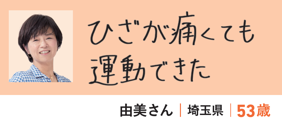 「40代から、ひざの痛みに悩まされていました。あまり動かない生活をしているうちに体重も増えてしまい…。カーブスでは痛みを感じる運動はできる範囲でやればいいので痛みがあっても大丈夫でした。筋肉がついたいまは、ひざを曲げる運動もできるようになりました。」