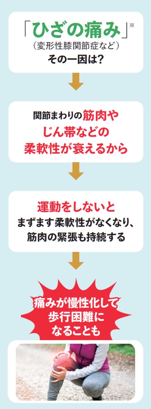 また、動かさないと関節のまわりにある組織が硬くなり、柔軟性が低下して動きにくくなります。