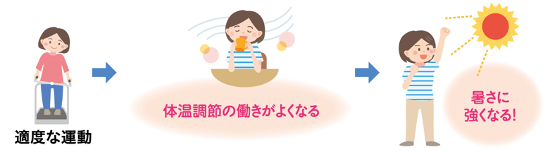 適度な運動は、体温調節の働きをよくして、暑さに強いカラダをつくってくれます。