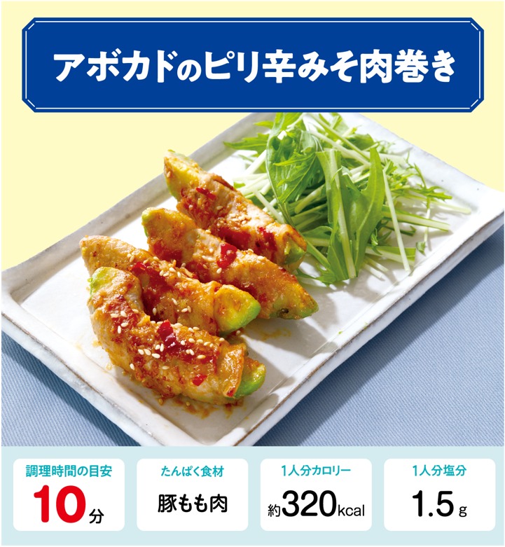 アボカドピリ辛みそ肉巻きレシピ【管理栄養士監修】