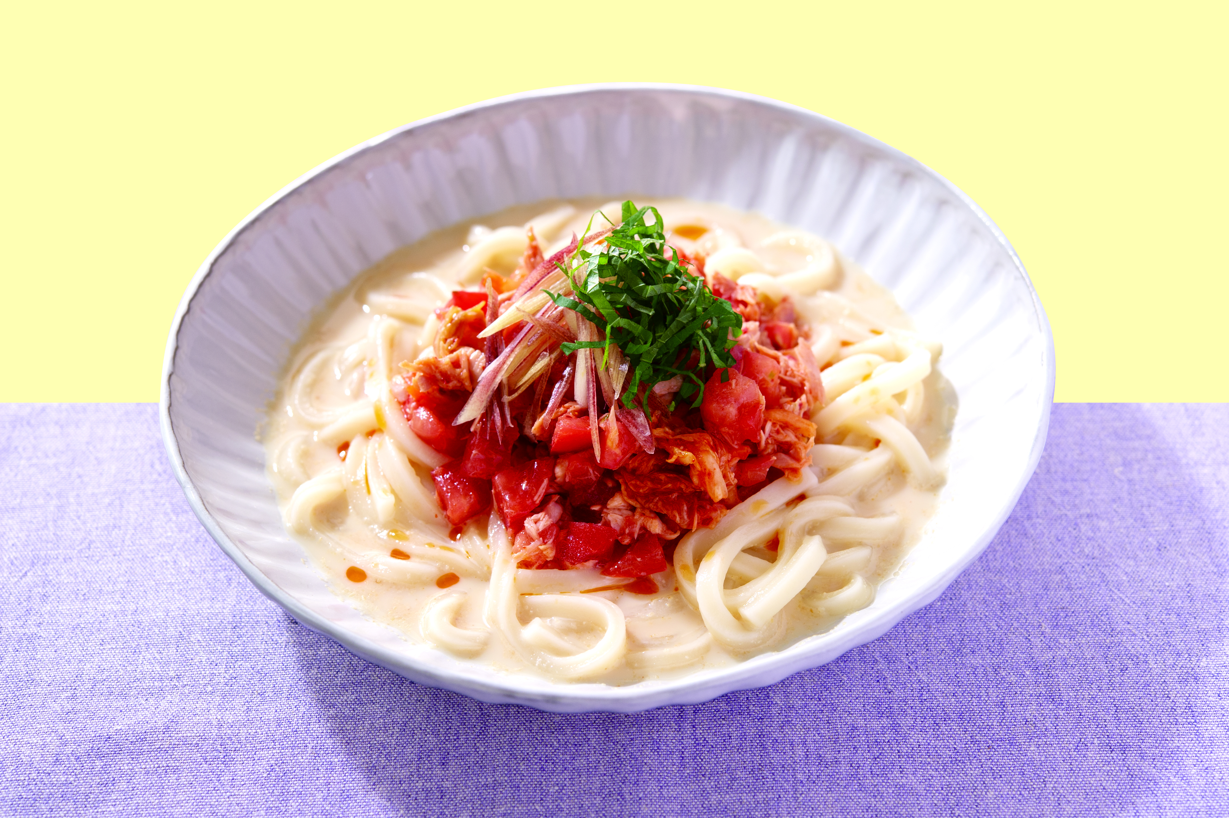 ツナキムチとトマトの冷製豆乳うどんレシピ【管理栄養士監修】