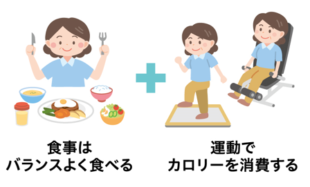 食事はバランスよく食べながら、運動で消費カロリーを増やすようにしましょう。