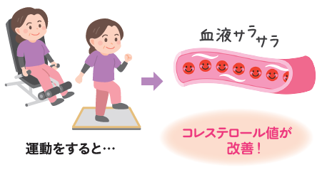 コレステロール値を改善するには、食事だけでなく運動をすることが大切です。