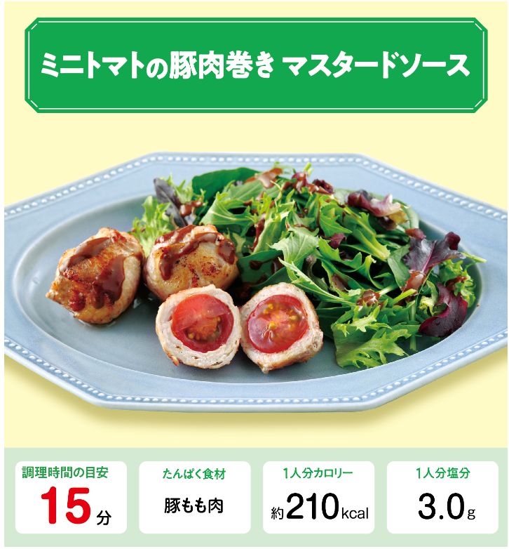 ミニトマトの豚肉巻き マスタードソースレシピ【管理栄養士監修】