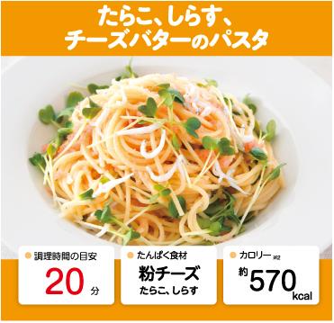 たんぱく食材:粉チーズ、たらこ、しらす