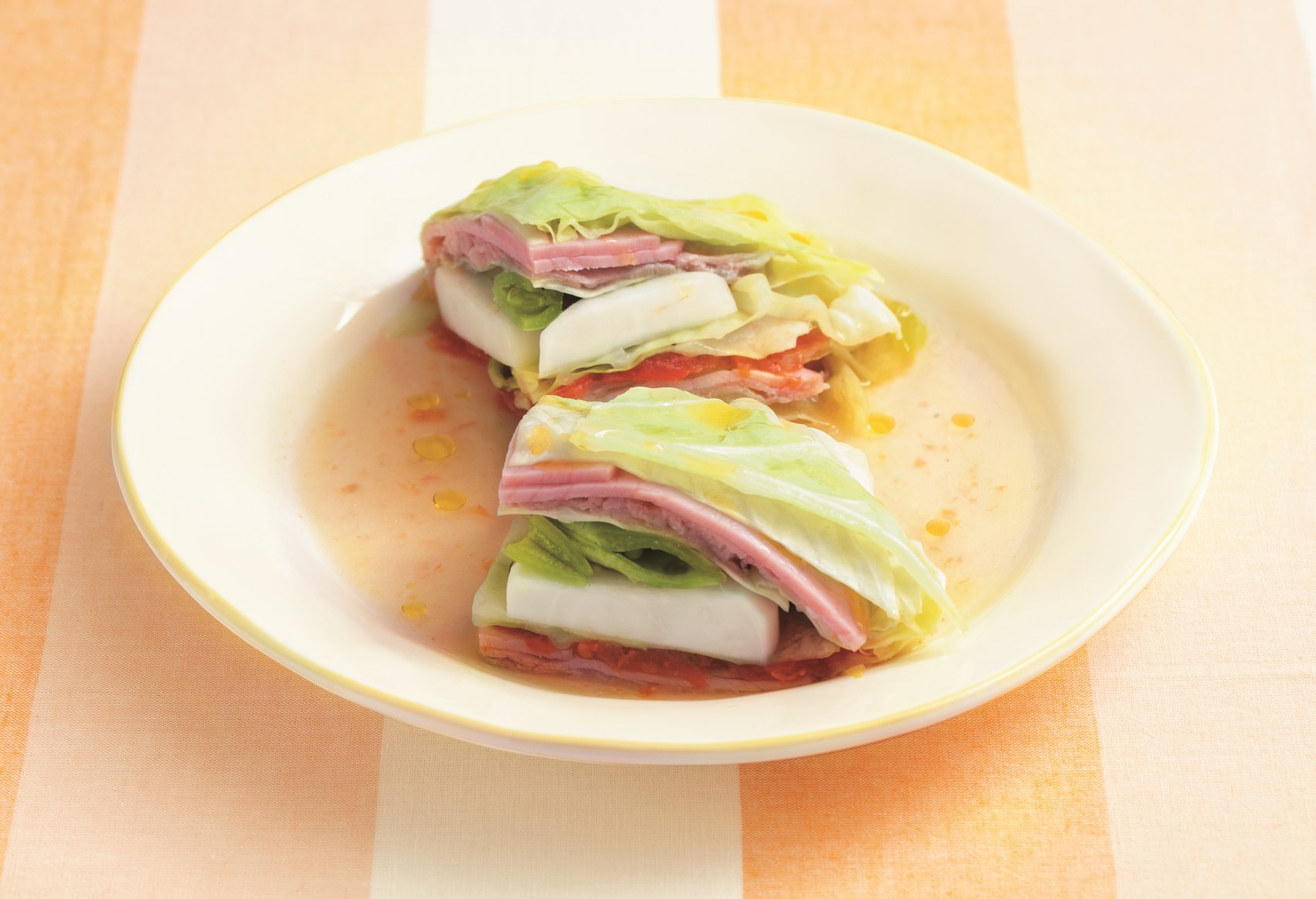豚肉とハムと春野菜のミルフィーユ蒸しレシピ【管理栄養士監修】