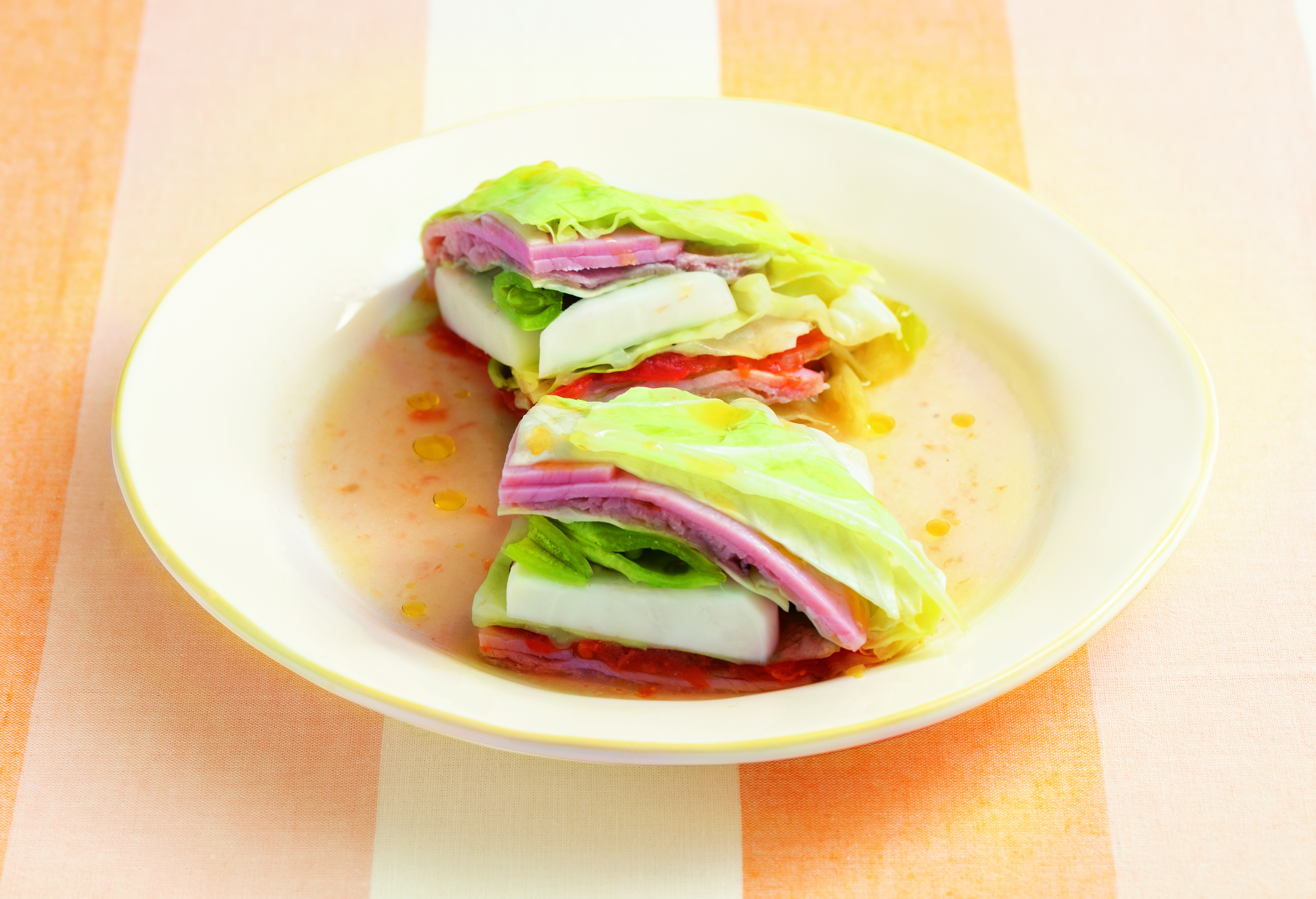 豚肉とハムと春野菜のミルフィーユ蒸しレシピ【管理栄養士監修】