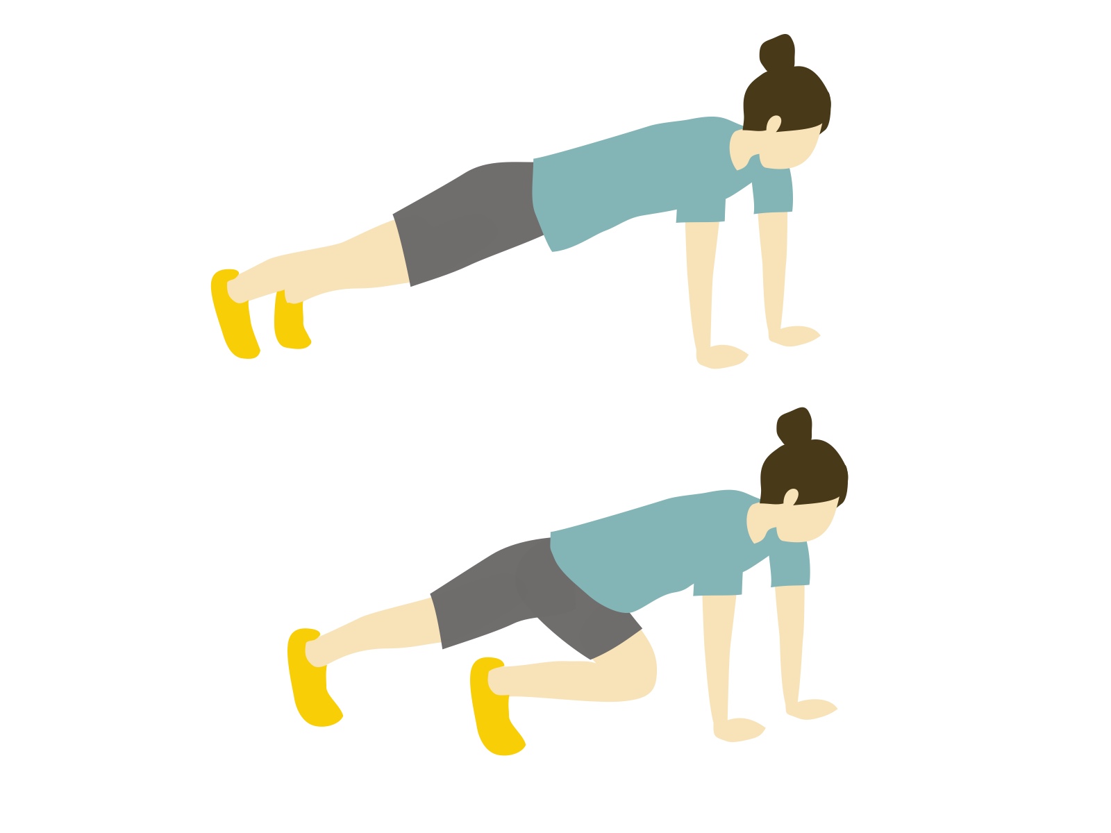 両手を地面に着けて頭から足までが直線になるようにします。そのまま左右の足を交互に上半身側へ引きつけます。体幹は動かないようにします。