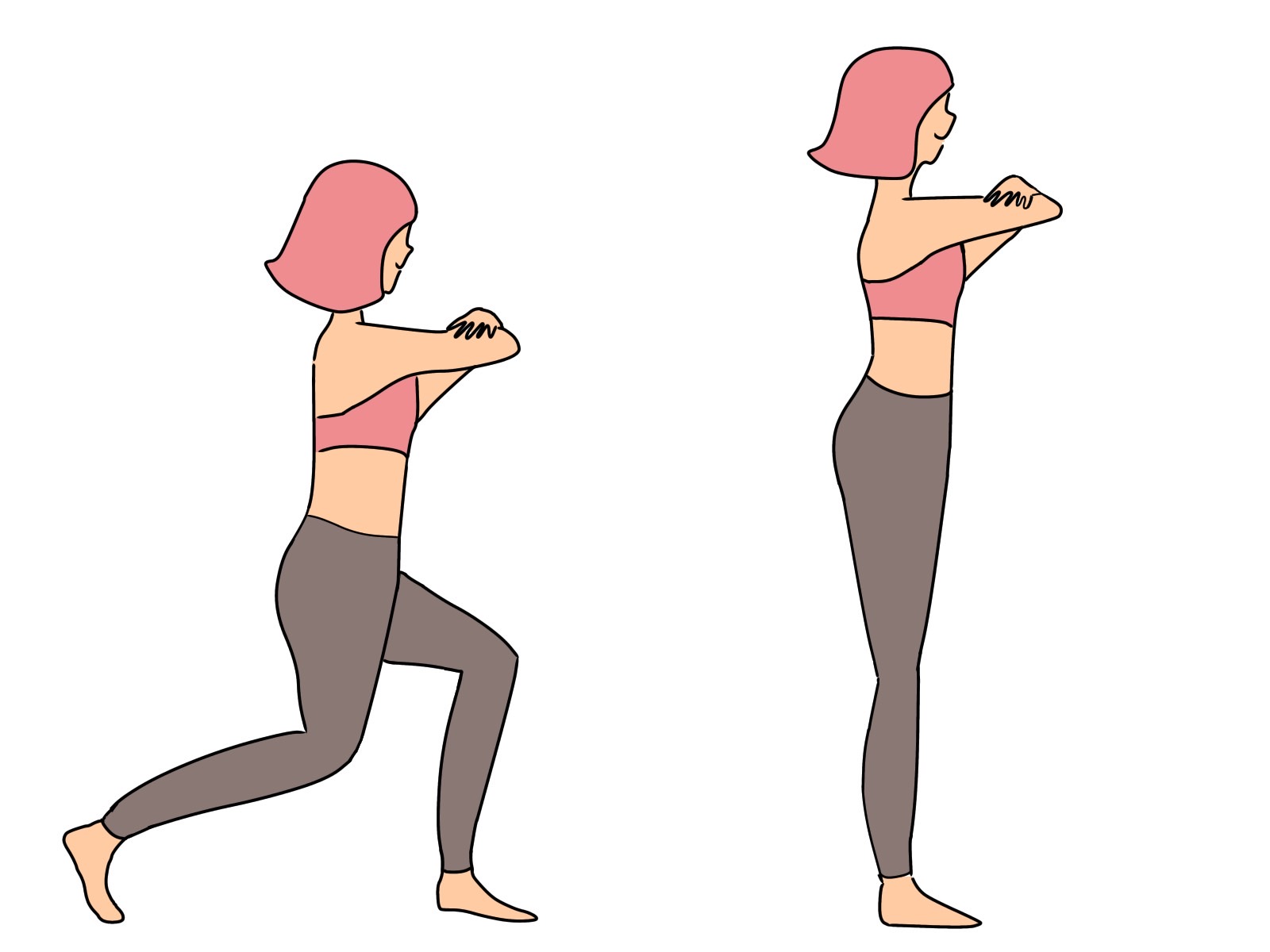 足を前後に開いた姿勢で、股関節や膝関節の曲げ伸ばしを行います。