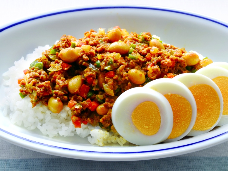 動物性と植物性のたんぱく質がたっぷり。大豆の食感もアクセントに。