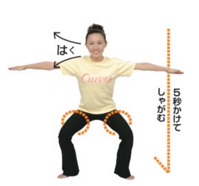 ②息をはきながら5秒かけてゆっくりしゃがむ