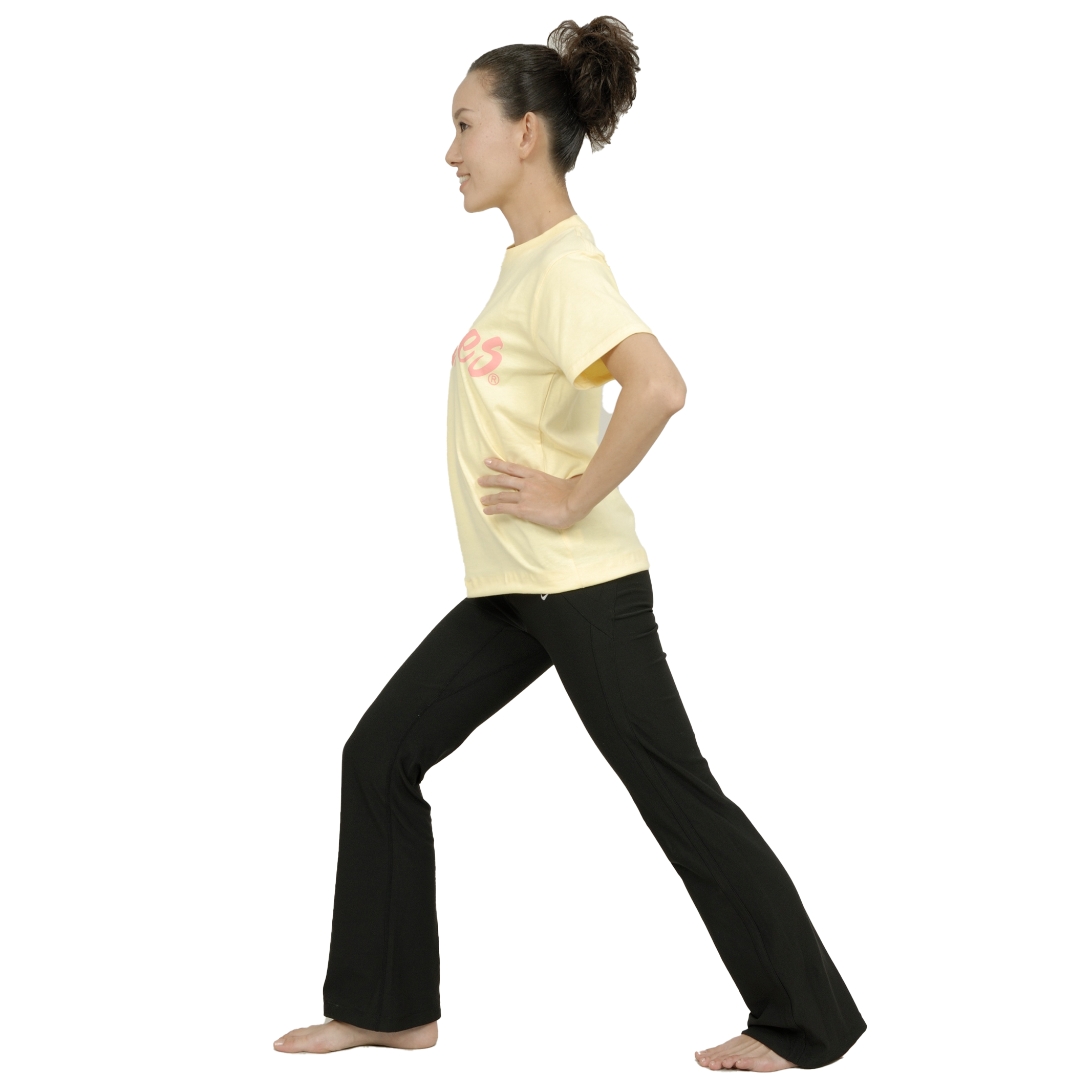 両脚はまっすぐ前後に開き、前足に重心をかける。