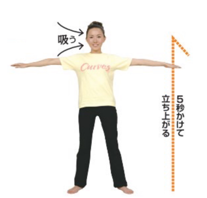 ③息を吸いながら、5秒かけてゆっくり立ち上がる