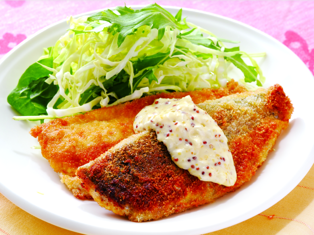 ➊アジを3枚におろし腹骨をとる。酒をからめて水気をふいたら、塩こしょうをふる。小麦粉、溶き卵、ざるに通して細かくしたパン粉をまぶす。