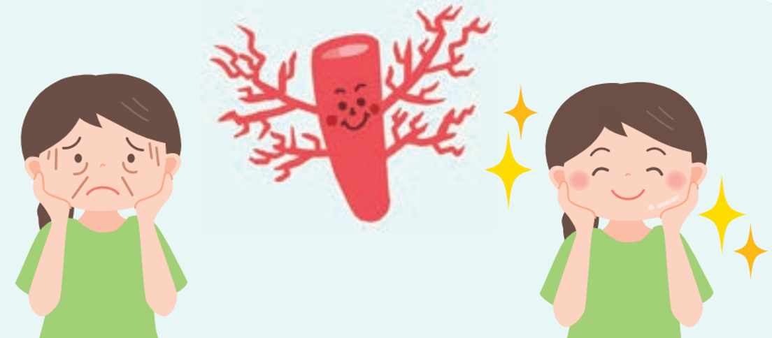 年齢とともに減っていく毛細血管がしみ、しわ、たるみの原因に。運動をすれば、何歳になっても毛細血管を増やせることがわかっています。