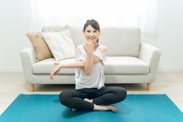 肩まわりを鍛えることで、肩こりや首の疲れを和らげる効果が期待できるトレーニングです。