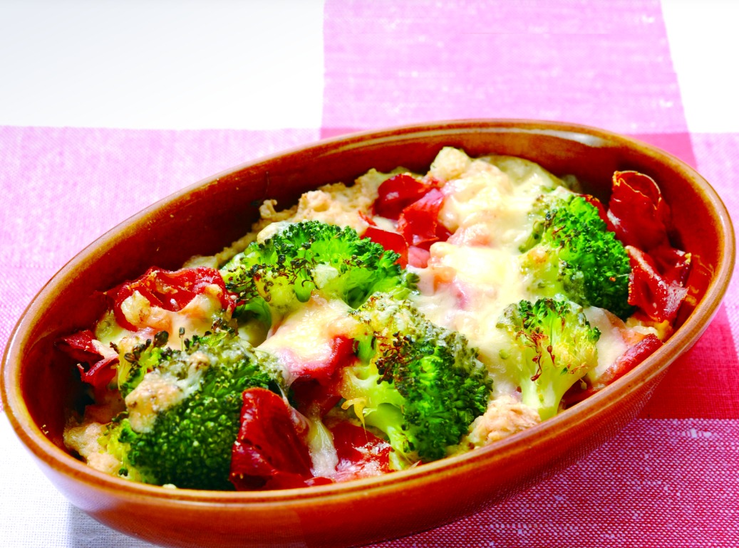 ➋ブロッコリーは子房に分け、熱湯でゆでる。生ハムは食べやすくちぎる。