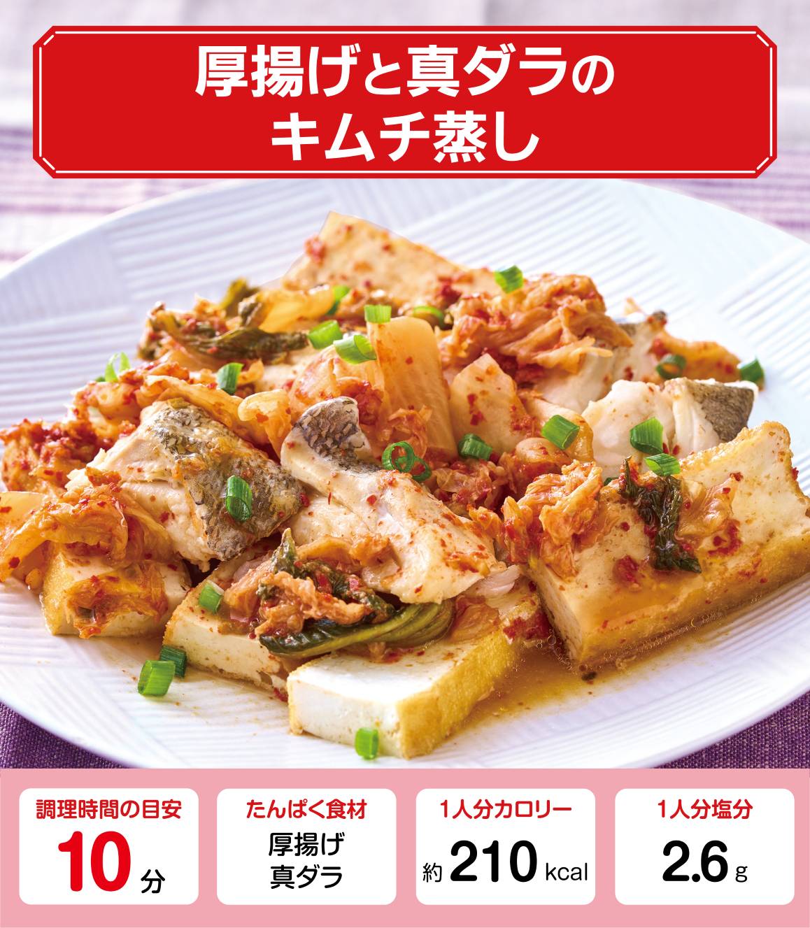 厚揚げと真ダラのキムチ蒸しレシピ【管理栄養士監修】