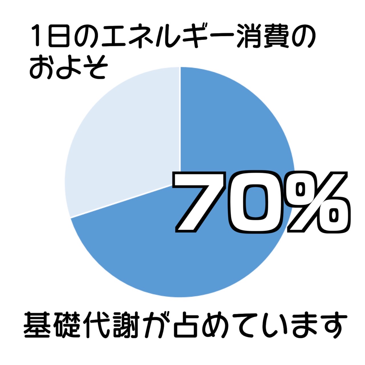 太りやすくなる理由の1つ目は、年齢を重ねることで筋肉が減少して基礎代謝が下がることです。基礎代謝とは、呼吸や体温調節など、生命を維持するために使われるエネルギーのことで、1日の消費エネルギーのうちのおよそ70%にものぼります。この基礎代謝は、筋肉が多いほど高く、筋肉が少ないと低くなります。ちょうど更年期の時期には顕著に筋肉量が減ってくるので、結果として基礎代謝が低下し、太りやすくなってしまうのです。