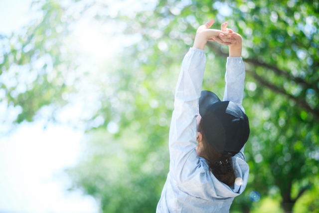 日光を浴びると、脳内に「セロトニン」という神経伝達物質が分泌されます。セロトニンは「幸せホルモン」とも呼ばれ、精神を安定させ心のバランスを整えてくれる作用が。1日15~30分程度は外に出て、日光を浴びるようにしましょう。