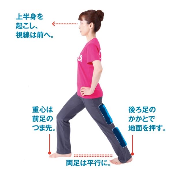 前もも、後ろもも、お尻の筋肉を意識しながら行いましょう。