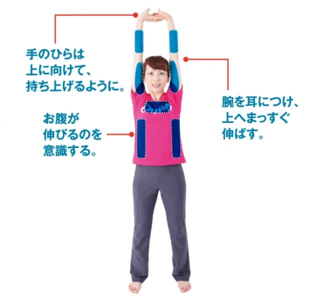 ※肩に痛みのある方は、壁から近い場所に立ち、手の位置を痛くないところまで下げるようにしましょう。