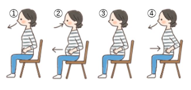 ➀楽な姿勢でおへその上あたりに手を当て、鼻から軽く息を吐きます。