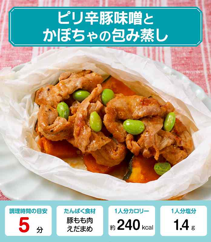 ピリ辛豚みそとかぼちゃの包み蒸しレシピ【管理栄養士監修】