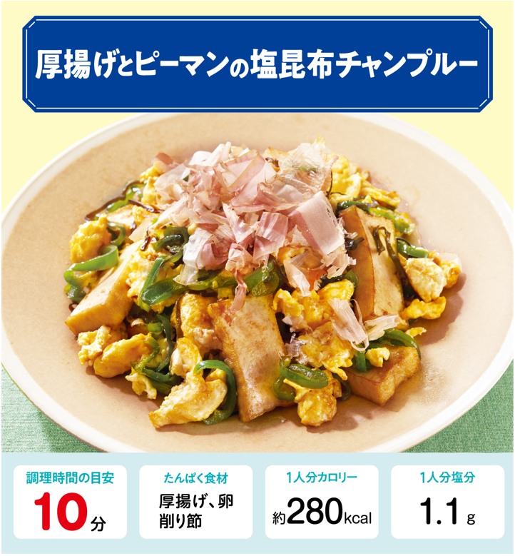 厚揚げとピーマンの塩昆布チャンプルーレシピ【管理栄養士監修】