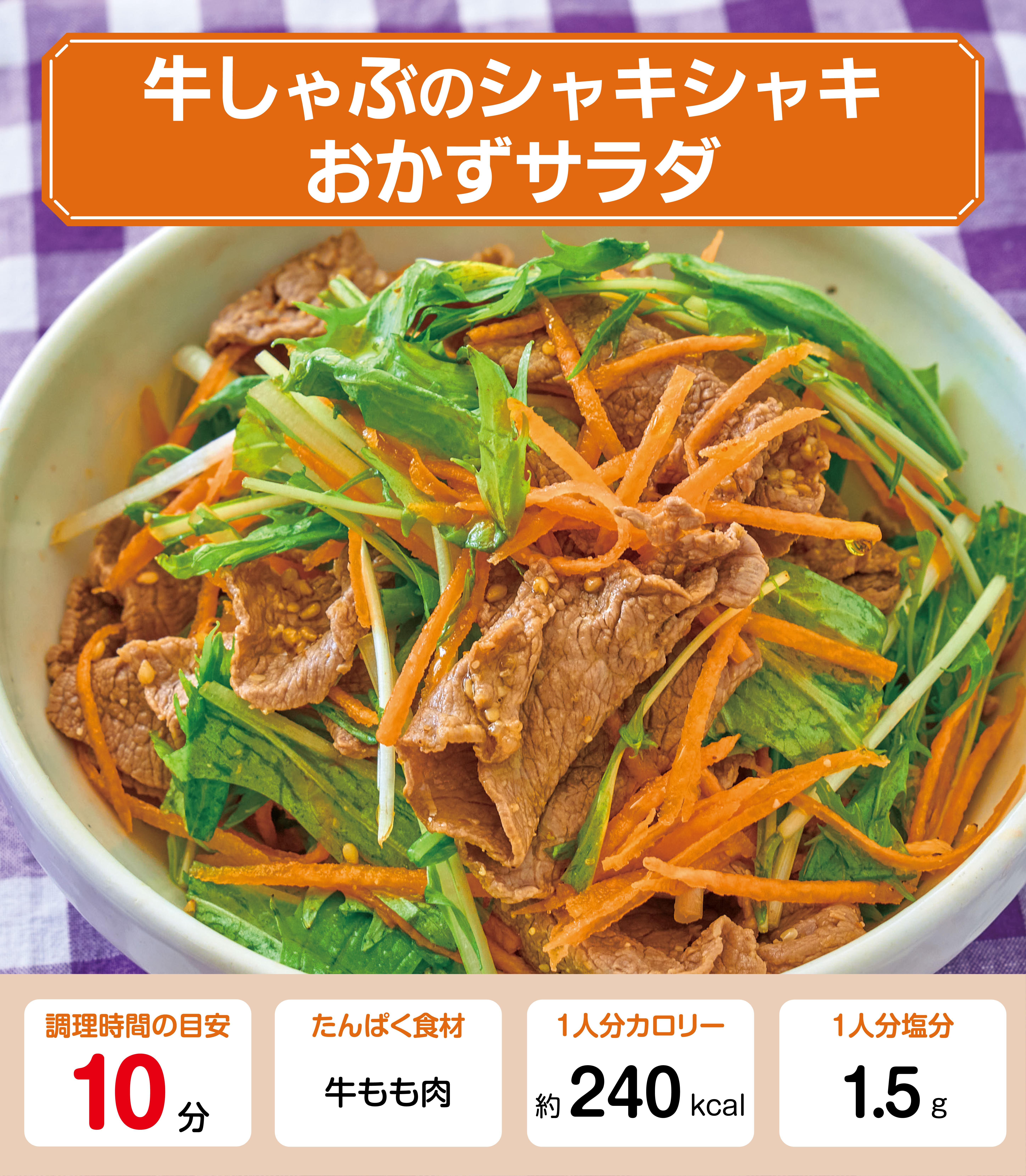 牛肉の代わりに豚肉やエビを使ってもいいですよ。水菜はレタスやキャベツのせん切り、生の豆苗でもOK。牛肉をゆでた後は、水にはさらさずそのまま冷ますとうま味が逃げず、おいしく食べられますよ。