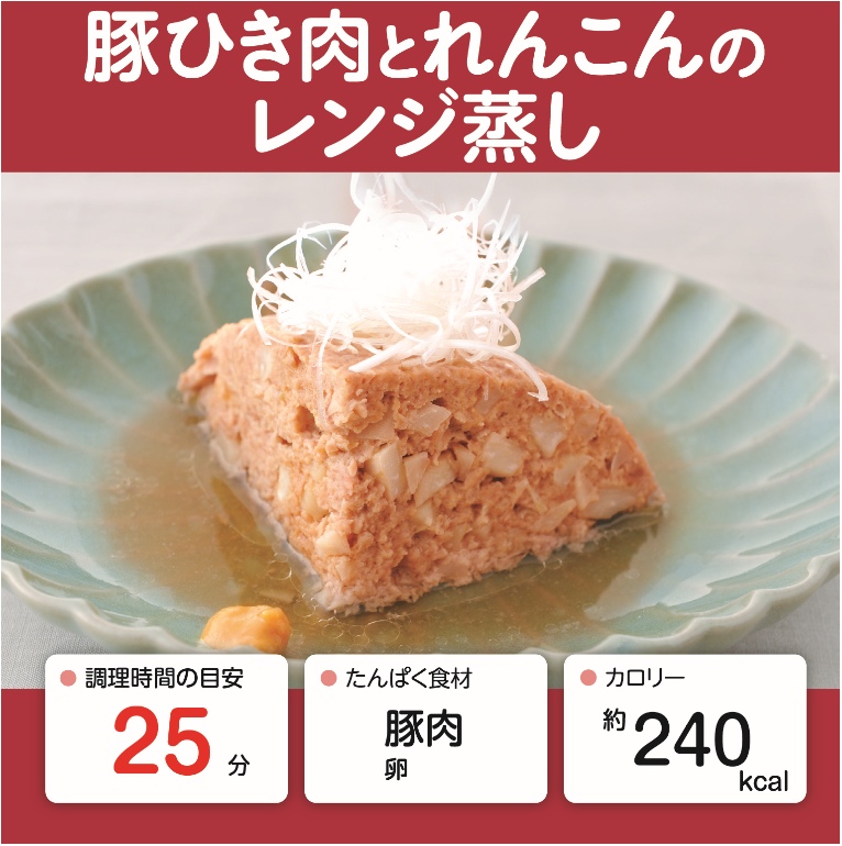 豚肉は、たんぱく質が豊富なだけでなく、脂肪燃焼に役立つカルニチンや、疲労回復効果のあるビタミンB1も豊富に含んでいるおすすめのたんぱく食材。今回のように蒸し料理にすると、油が落ちてカロリーオフにつながります。