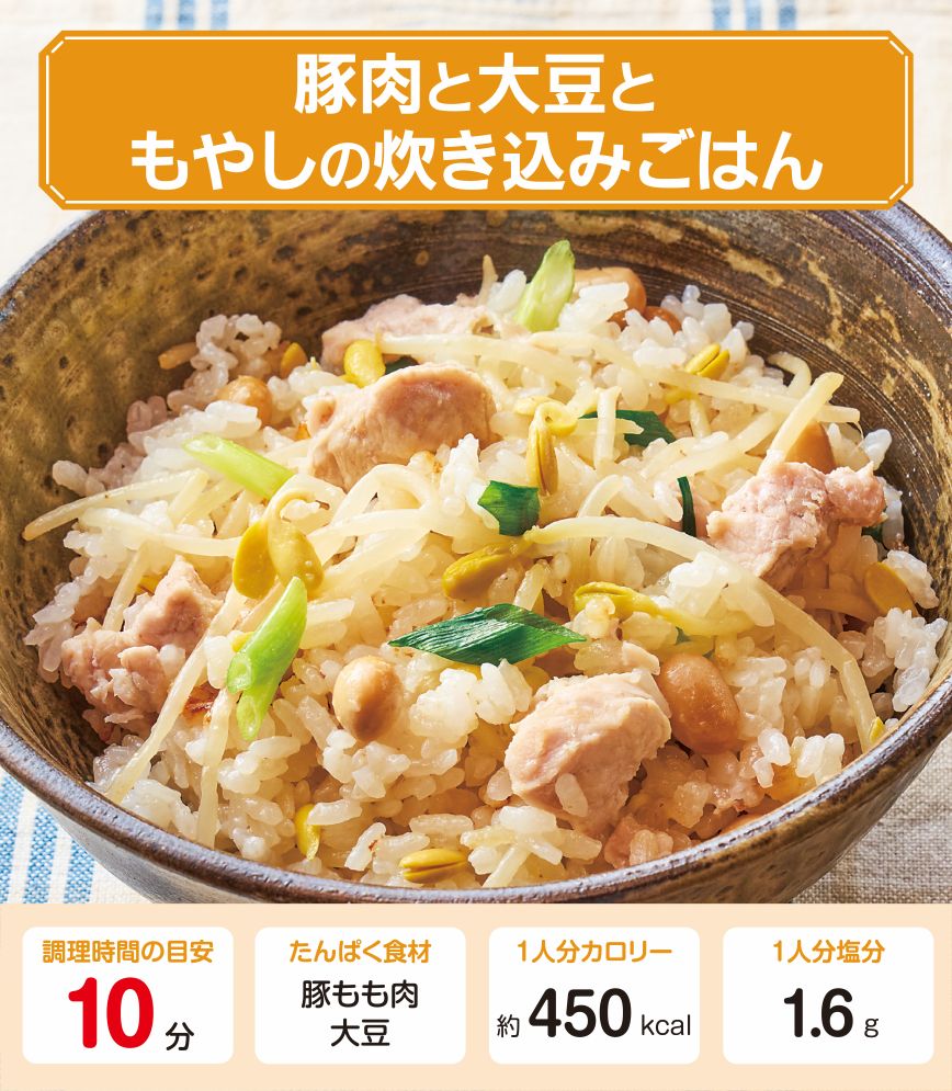 炊飯器でかんたん! 豚肉と大豆で、たんぱく質しっかりとれる炊き込みごはんです♪