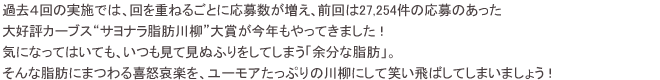- > 第5回 サヨナラ脂肪川柳 2013 大賞発表!!