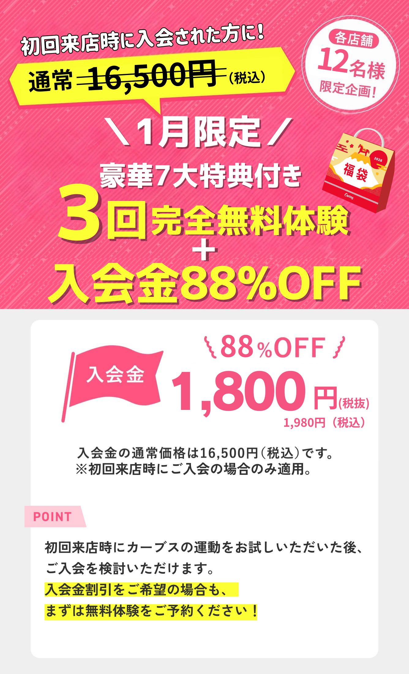 3回完全無料で体験できるのでカーブスがご自身に合っているかを試したい方、効果を実感したい方にも無料体験は大変オススメです