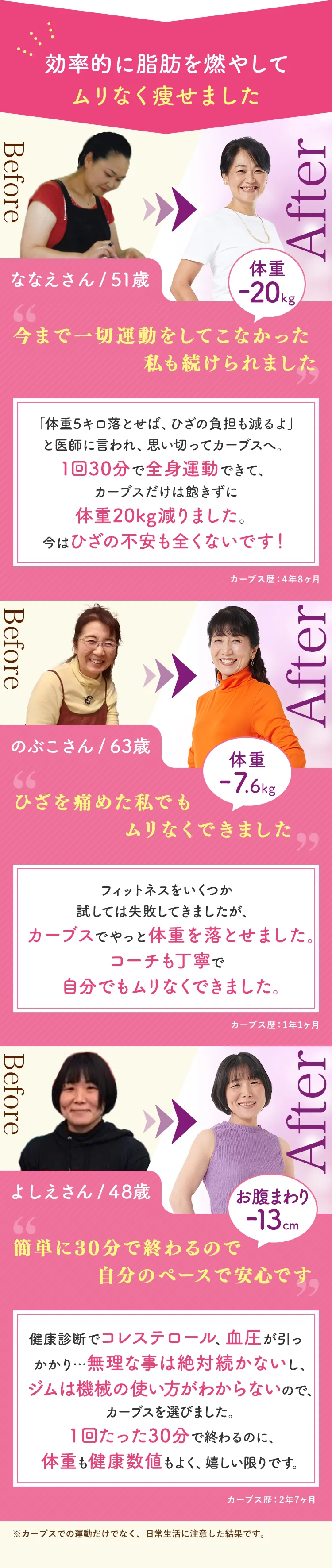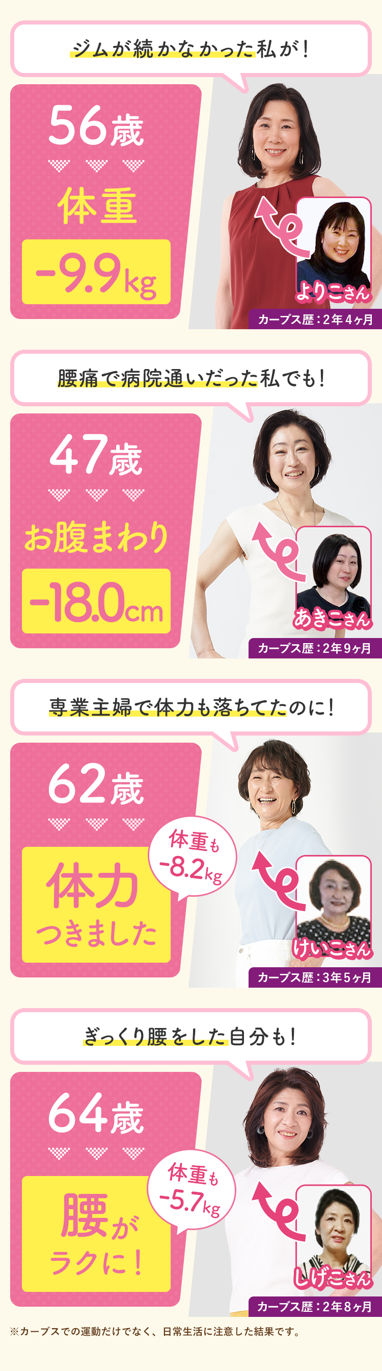 カーブスではあなたと同じ悩みをもった