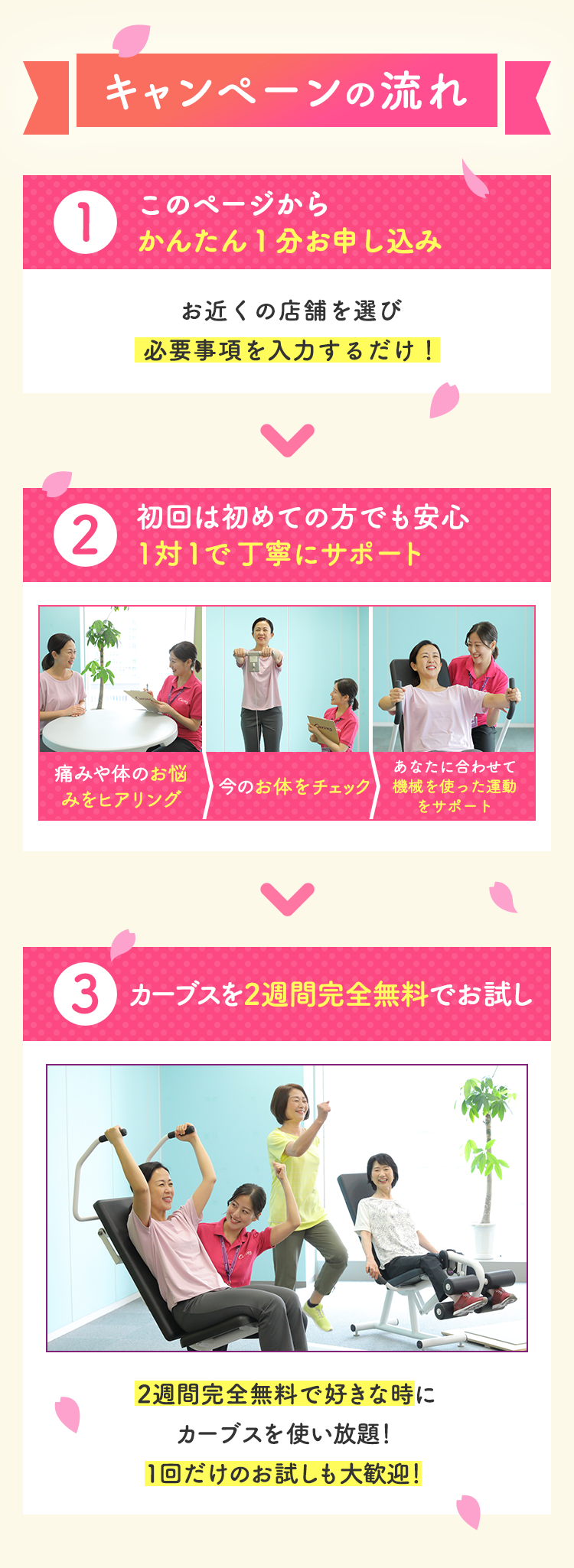 カーブスからのお電話で、日時確定となります。
