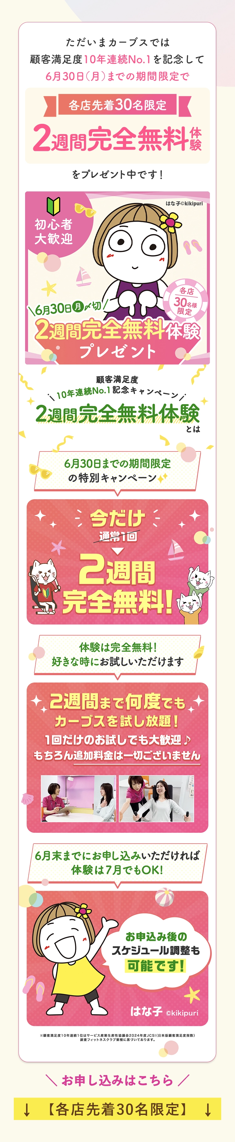 ご記入頂いた情報は㈱カーブスジャパンのプライバシーポリシーに基づき