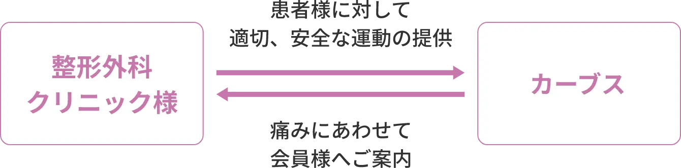 痛みをお持ちのカーブス会員様が、痛みと上手に付き合いながら、運動を継続するために、連携先のお医者様へのご紹介を行っています。