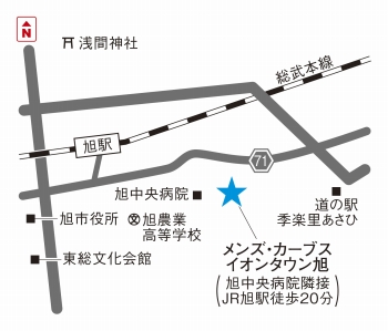 - バス停(旭中央病院東)から徒歩4分/イオンタウン旭施設内北東のサイゼリヤ様横にメンズ・カーブスがあります。